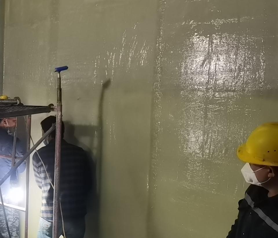 烟气脱硫系统重防腐衬里工程,包括吸收塔、烟道、箱罐、水池、沟槽等碳钢基材及混凝土基材的多种设备及设施。现行工艺一般采取鳞片胶泥、硫化胶板或玻璃钢衬里,但鳞片胶泥施工难度较大,施工均匀性很难达到,对施工人员技术要求高,造成施工质量极不稳定,难以抵抗酸雾及脱硫浆液的渗透腐蚀;而且鳞片胶泥脆性较大,容易开裂;同时,胶泥须涂抹到一定厚度才能体现其防渗效果,而该厚度同时也形成了较大的重量负荷,尤其在带有振动的脱硫系统中,容易造成防腐衬里剥离、脱落;硫化胶板施工难度难度更高,施工过程中本身就比较容易鼓泡,胶板接缝容易拉裂、分离,同时,接缝也是胶板防腐最薄弱的环节,一般使用一段时间后,胶板接缝处及施工不良处开始出现小面积鼓泡及剥离,导致设备腐蚀穿孔,且一旦出现衬层破坏,难以清理及修复;而玻璃钢所用的乙烯基树脂一般难以长时间抵抗成分复杂的腐蚀介质,介质中各种腐蚀离子容易穿越玻璃钢的交联网,导致基材“返锈”,造成防腐衬里层脱落、剥离、溶胀及开裂。根据上述情况,我公司建议采用光固化纳米片材和纳米复合重防腐材料系列产品。